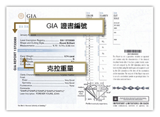 GIA 鑽石0.30ct ~ 0.99ct鑑定證書 正面與內頁