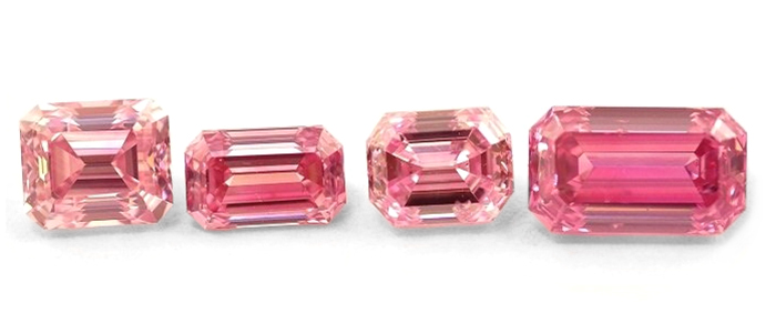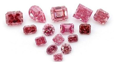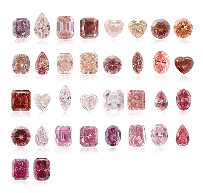 目前已知的所有粉鑽的顏色組合,從左到右: