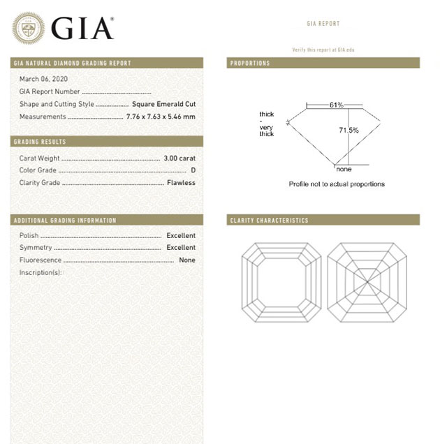 方形祖母綠形 3.00ct D/FL