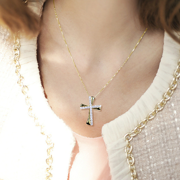 雙色雙材質十字架鑽石項鍊